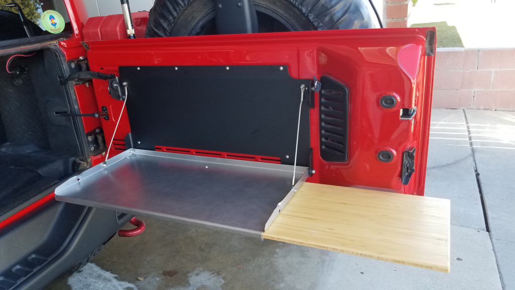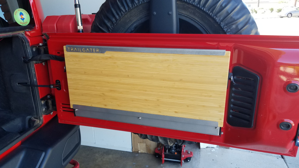 I bought this product from Trail Recon. You YouTube fans may recognize the channel name, Brad is well known in the off-road and overlanding circles. At his web site he's got all sorts of gear for people into off-road / overlanding, and that is where I found The Trailgater. These are made by Outback Adventures for the Jeep JK and JL, and more recently for the new Ford Bronco. The one shown here is the black painted version with the bamboo cutting board for the JK.