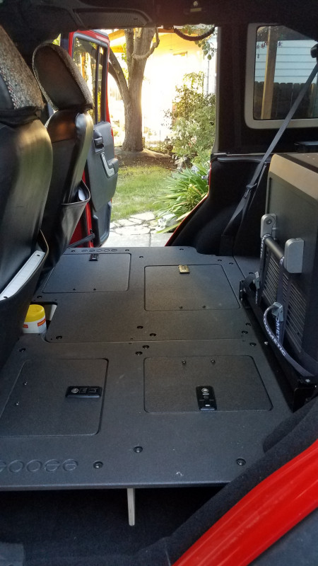 Third, there are no written instructions in the boxes. There are some rudimentary instructions at their web site, but they also have a couple of videos (specifically for the Jeep JKU) that are way more informative than the written stuff. They are about the Side Cubbies Installation (must be done first) and the Rear Plate System, and were made in conjunction with 5.11 Tactical, who was doing a buildout on a JKU they had. These videos will help you install the plate and "cubbies," which fit behind the back seat in the Wrangler Unlimited. The "Stealth Sleep Package" I ordered also came with what they call the "Second Row Seat Delete Plate System," which when combined with the Rear Plate and Cubbies will give you a nice flat surface (with storage below) all the way from behind the front seats to the tailgate door. But ... there are no instructions that I could find anywhere at the Goose Gear site that describe how to install the Second Row Seat Delete System. The the appearance of the gear is fairly intuitive, but I found a video that helped clear some things up for me before I spent half a day doing it the wrong way first. Check out Dan with Backwoods Overland, he produced a video about installing the entire system.