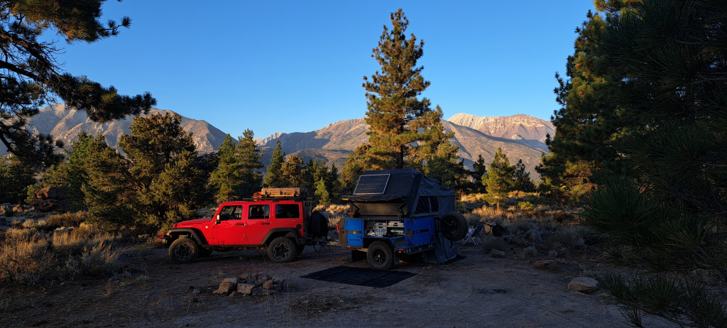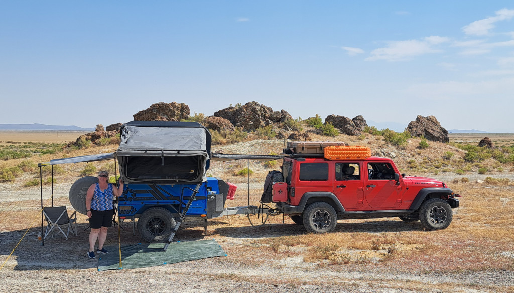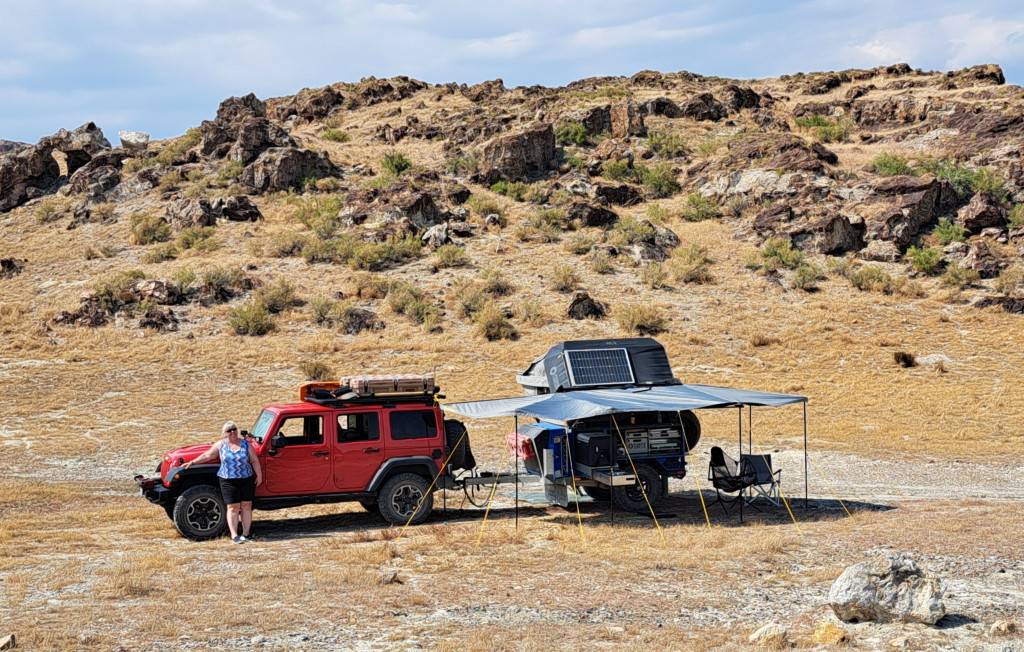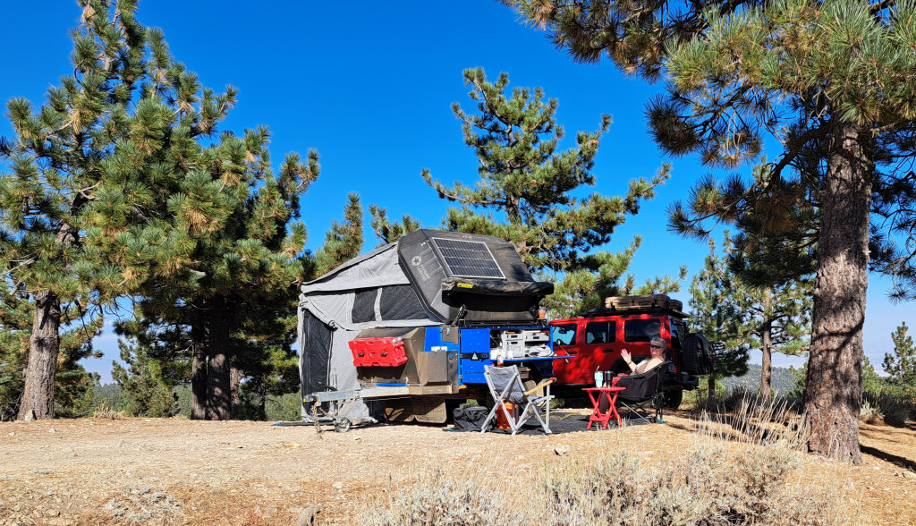 Overlanding can be as simple as throwing a tent and a couple of sleeping bags in your trunk with some type of stove to cook on (unless you plan to find, cut, and burn firewood once you're in camp), clothing, cooking utensils, food and water. We're kind of at the other extreme, I suppose, as we have a small trailer that allows us to have a lot of things at our disposal that most folks may not consider "necessary." Like a refrigerator, a hot water heater (with a shower attachment), a 40 gallon water tank, dual propane tanks, and lots of storage space. Oh, and did I mention the queen-size bed in the tent on top? Our rig also has a lot of other stuff. For details, look here.