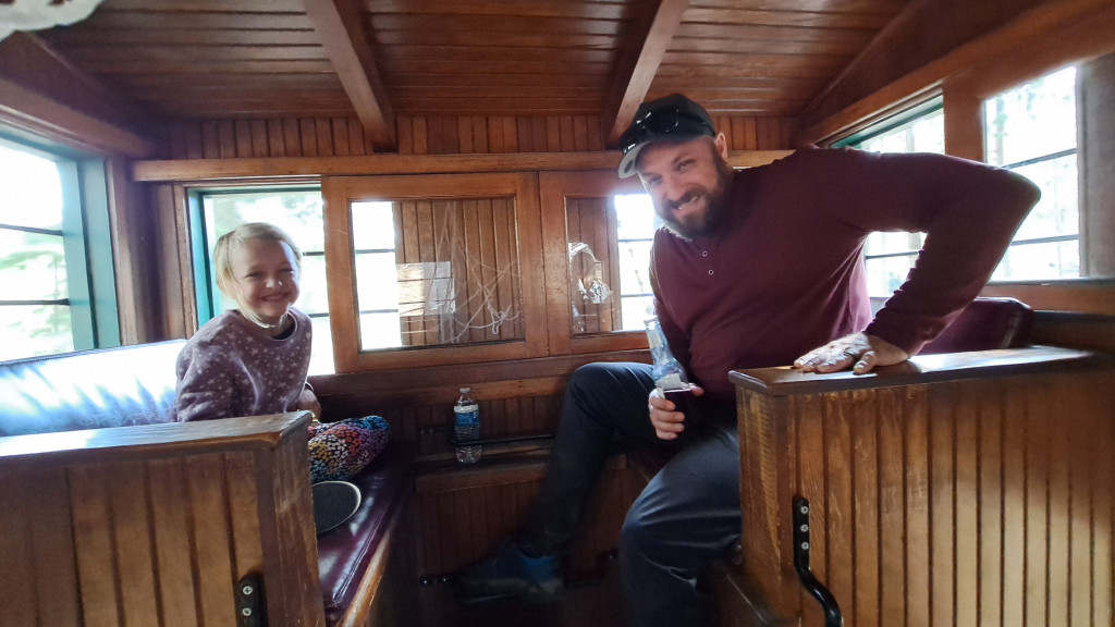 Taken in the cupola of the caboose at the end of the train hauled by the locomotive above. My son Mike and his younger daughter Lennon, enjoying the ride.