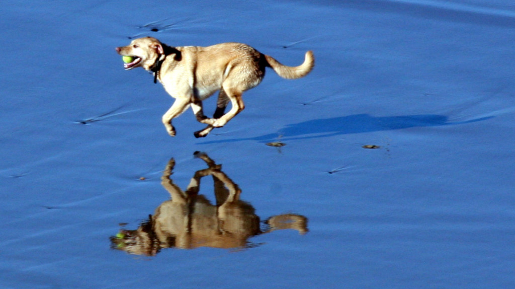 15 March 2024, a pooch having fun on the beach near the north end of Lincoln City, Oregon.